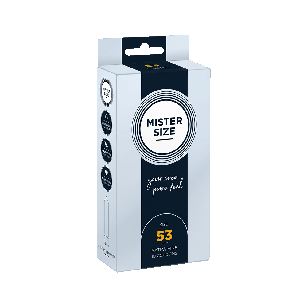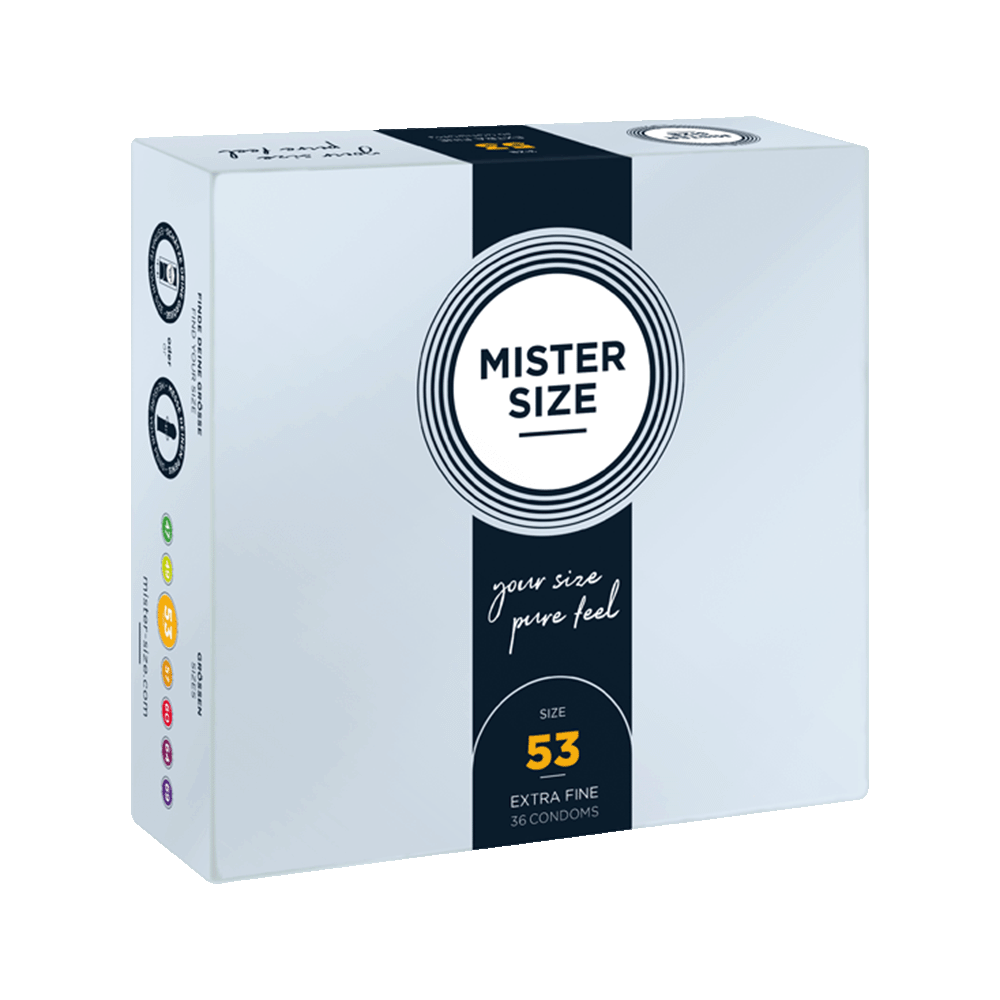 Das Kondom für deinen Penis! Erlebe jetzt den sicheren und gefühlvollen Sitz von Mister Size in der Kondomgröße 53.