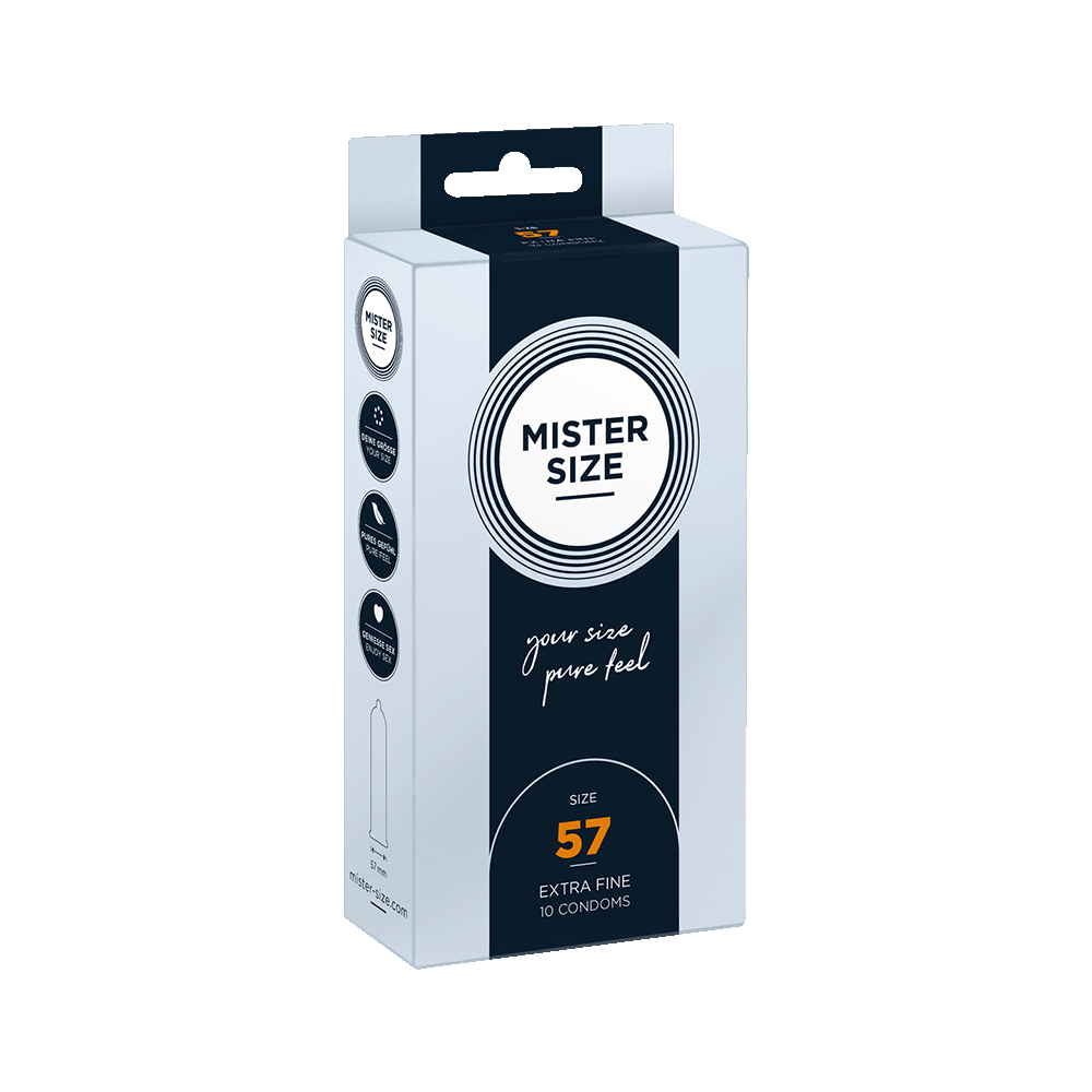 Es gibt Zeiten, in denen Standard einfach nicht ausreicht - und das hast du wahrscheinlich auch schon beim Sex festgestellt. Vielleicht hat das Abrollen genervt und es fühlte sich nicht wirklich passend an. Kein Wunder, wenn du bisher noch nicht deine persönliche Größe gefunden hast. Aber ab jetzt hast du immer MISTER SIZE 57 dabei. Jetzt passt alles harmonisch zusammen, und gemeinsam werdet ihr jedes Mal aufs Neue erleben, wie unbeschwert und leichtfüßig Sex eigentlich sein kann.