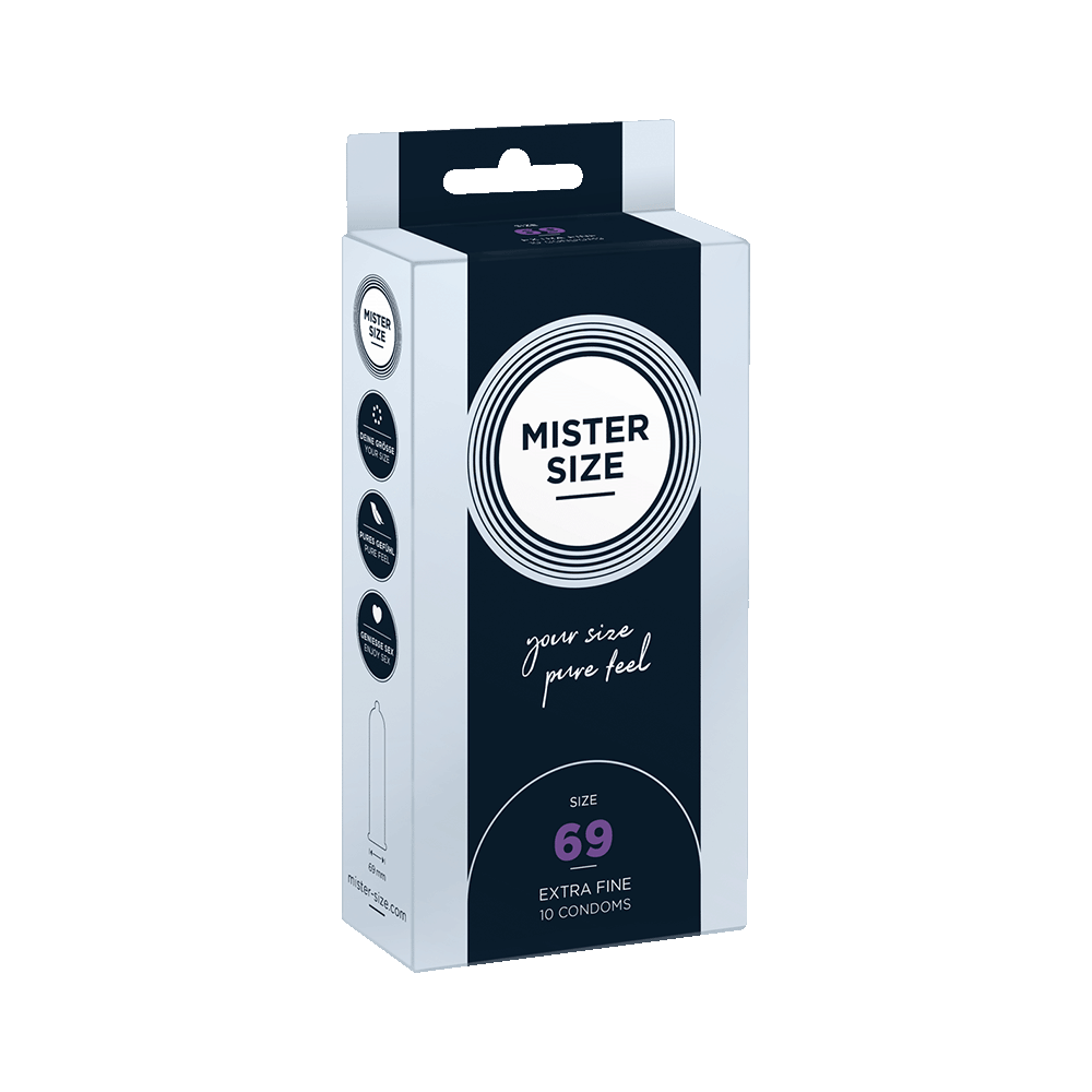 Beim Sex mit einem großen Penis ist Verantwortungsgefühl und Bedachtsamkeit gefragt. Zudem ist es nicht immer einfach, das passende Kondom zu finden. Zum Glück ist MISTER SIZE 69 wie ein maßgeschneiderter Anzug für dich: Es schmiegt sich perfekt an dein bestes Stück an, wie eine zweite Haut, und ermöglicht dir intensive Momente. Keine lästigen Nebeneffekte, sondern pure Empfindungen beim Liebesspiel.